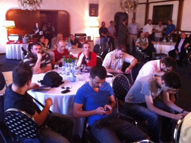 Am primit rugămintea celor de la Federația Română de Polo de a invita câțiva bloggeri la prezentarea echipei naționale, care pleacă în China, cu mare, mare bucurie. Și vreau să le mulțumesc pe această cale, în special Ralucăi :) Bloggeri au avut o masă specială, unde au făcut ce știu ei să facă mai bine, adică au butonat, după cum puteți vedea în poza de mai jos :D