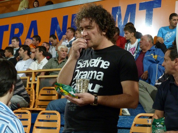 Conferinţa s-a încheiat cu decizia luată ad-hoc de a merge la stadion să vedem meciul dintre Ceahlăul Piatra Neamţ şi FC Braşov, căci dacă tot eram în zonă am zis să nu pierdem ocazia să respirăm şi noi aerul stadionului, cum ar veni :D Mai jos aveţi două fotografii, una cu mica, dar inimoasa, mă înţelegeţi :D, galerie formată din je, Makavelis, Hoinaru şi Toma (sursa foto inegalabila Monica :D) şi una în care vedeţi un suporter al formaţiei gazdă (sursa Cezar) care face un gest inadmisibil pe un stadion de fotbal din România: nu scuipă cojile de seminţe pe jos, ci într-un pahar de plastic. De bere, fireşte :D Dacă aţi fi văzut ce feţe au făcut ceilalţi spectatori, care, fireşte, aruncau cojile pe jos…