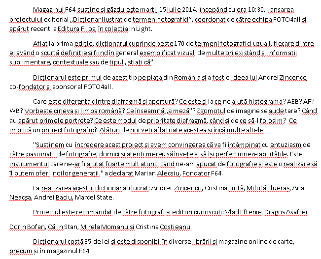 Ştirea cu acest „Dicționar ilustrat de termeni fotografici” este faină în sine, ca să zic aşa. Dar când văd că este şi Dragoş Asaftei printre contributori, masiv membru al Kooperativa 2.0, apoi aşa mă ia cu o cădură la coraconul sufletului, de foioioioi :D