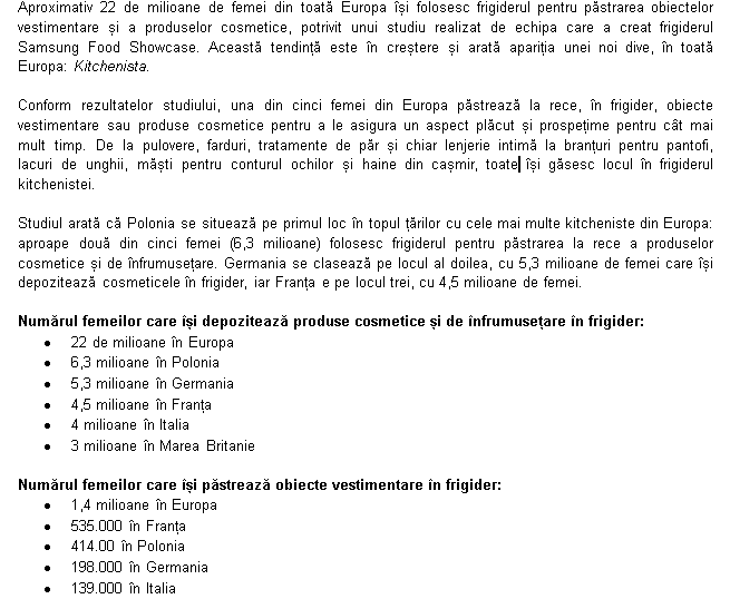 No comment: 1,4 milioane de femei îşi ţin hainele în frigider