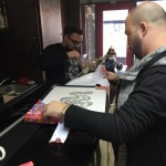 Prima mea opțiune la faza asta este, de ceva vreme, Alexandra Pașca. De la care am cumpărat mai multe lucrări. Și care mi-e chiar dragă, ca să o zic direct :D Când i-am spus ce vreau să fac, a reacționat cu entuziasm și mi-a cerut mai multe informații despre băieții de la Cappuccino Story. Când, mirat (mă înțelegeți, eu eram pe sistem ”dă-mi ceva ce ai pe acolo și care se potrivește”), am întrebat-o de ce vrea informațiile astea, mi-a spus că nu are cum să creeze ceva dacă nu le știe. Căci Alexandra a vrut să picteze ceva special pentru această ocazie, special pentru băieți :)