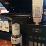 Odată umplute rezervoarele, imprimanta intră într-un proces de inițializare, care durează cam 10 minute. Mi-a fost recomandat să fac o aliniere a cartușelor, pentru a mă asigura că imprimarea va fi cât mai fidelă. Informațiile sunt afișate pe un display LCD puțin cam mic pentru mine, mai ales că acum sunt în perioada în care nu-mi pot pune încă ochelari pentru citit…