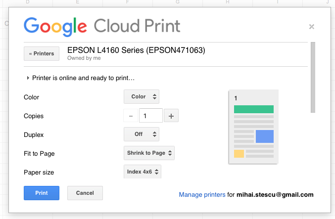 Am setat-o și ca imprimantă în Google Cloud și ulterior am tipărit direct din aplicațiile Google.
